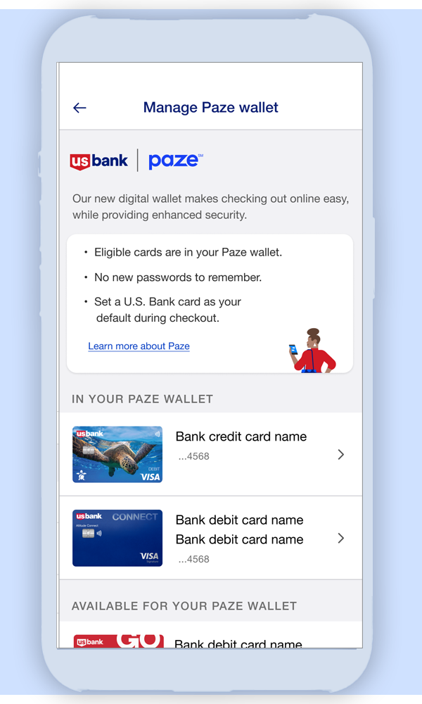 US Bank aimed to enhance its digital payment offerings with intuitive wallet solutions for Zelle and the new tokenized payment service Paze. The challenge was to design seamless transaction history interfaces and wallet management workflows that balanced user-friendliness with robust functionality, while ensuring consistency across teams and platforms.